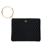 The Quilted Black Bracelet Bag is a timeless and elegant accessory designed for hands-free sophistication. Crafted from smooth quilted black nylon and accented with luxurious gold hardware, this contemporary wristlet perfectly blends style with practicality. Its signature bamboo bangle slips effortlessly over your wrist, transforming the pouch into a chic bracelet bag that’s both fashionable and comfortable. Measuring 8.5 by 6.5 inches with a bangle diameter of 3.25 inches, it offers ample space for your phone, wallet, keys, and essentials while maintaining a slim, lightweight profile. Ideal for travel, errands, or evenings out, this versatile black bracelet pouch is the perfect solution to bulky bags, combining convenience with refined style.
