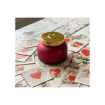 Ignite your space with this stunning red glass candle topped with a gleaming gold lid adorned with an embossed heart and locket detail. Infused with Capri Blue's signature Volcano scent, this 19oz candle delivers a captivating blend of tropical fruits and sugared citrus that awakens the senses. A luxurious addition to any room, it combines visual elegance with an intoxicating fragrance experience.