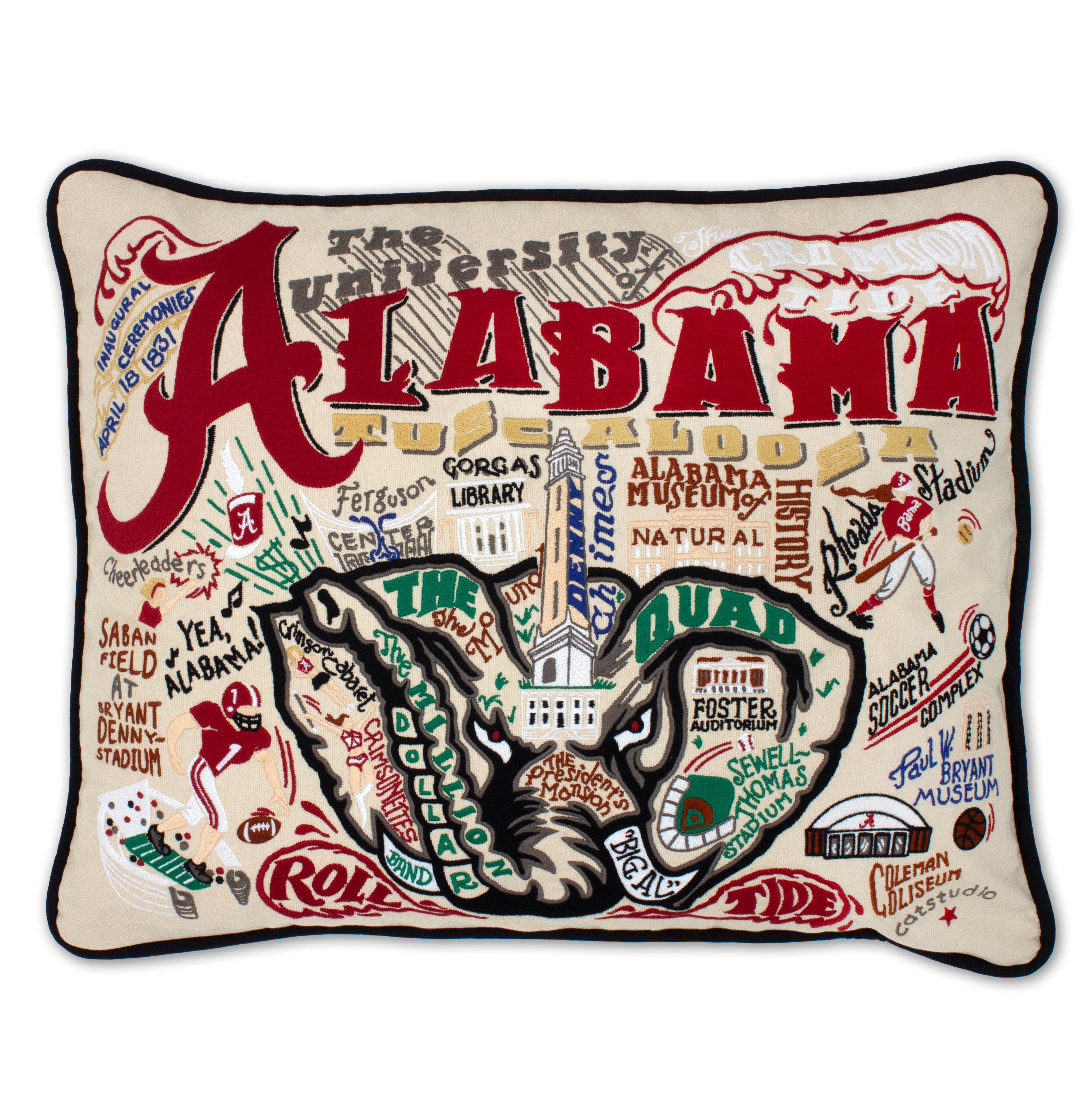 Showcase your Alabama pride with this beautifully crafted collegiate embroidered pillow. Featuring a rich tea-colored background accented by sleek black piping, it adds a touch of sophistication to any room. Measuring 16x20 inches, this pillow offers the perfect balance between comfort and style. The convenient zipper closure ensures easy maintenance, keeping your pillow fresh and inviting. Elevate your home décor with a piece that combines quality craftsmanship and timeless university spirit—perfect for fans who want to make a lasting impression.
