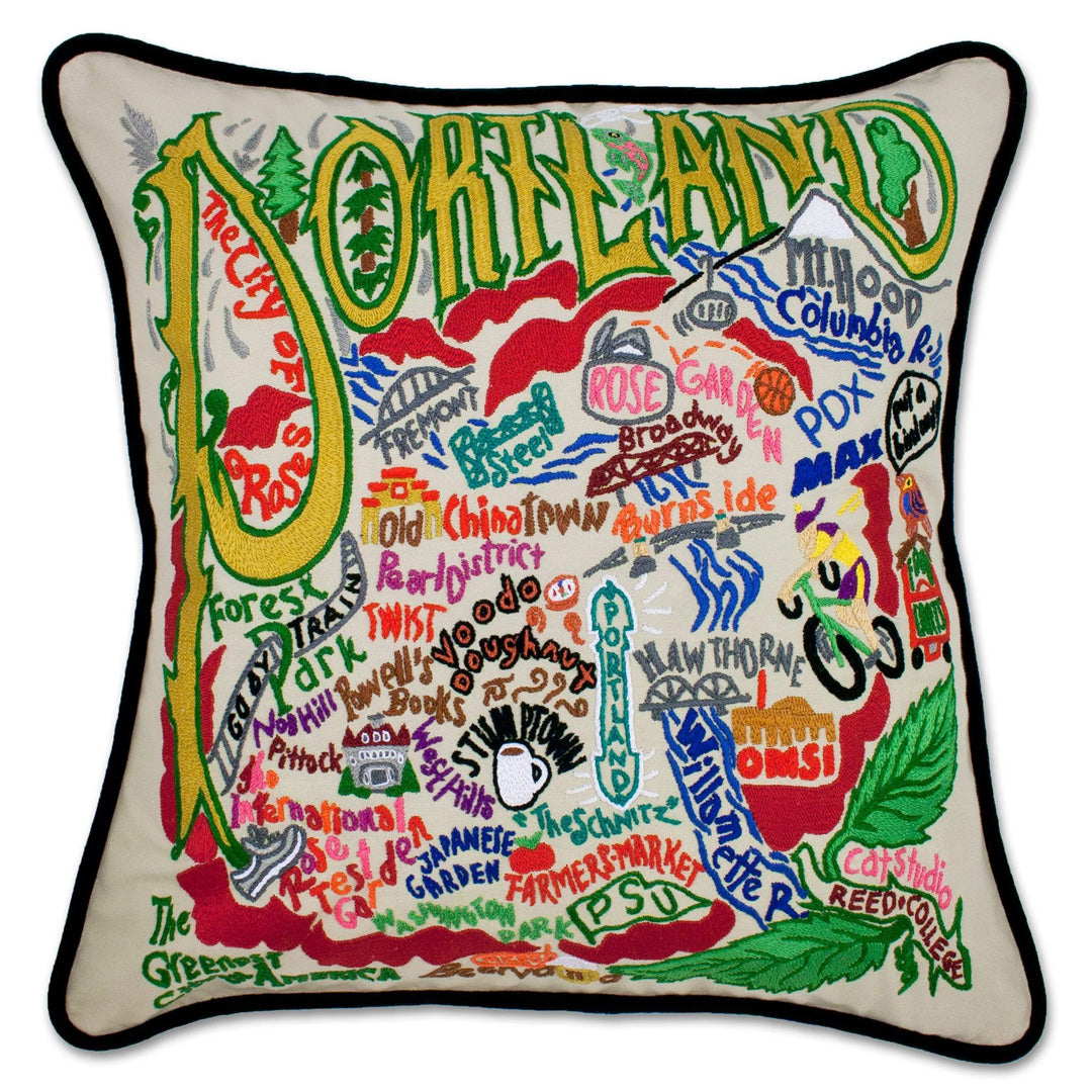 Portland, OR Hand Embroidered Pillow
