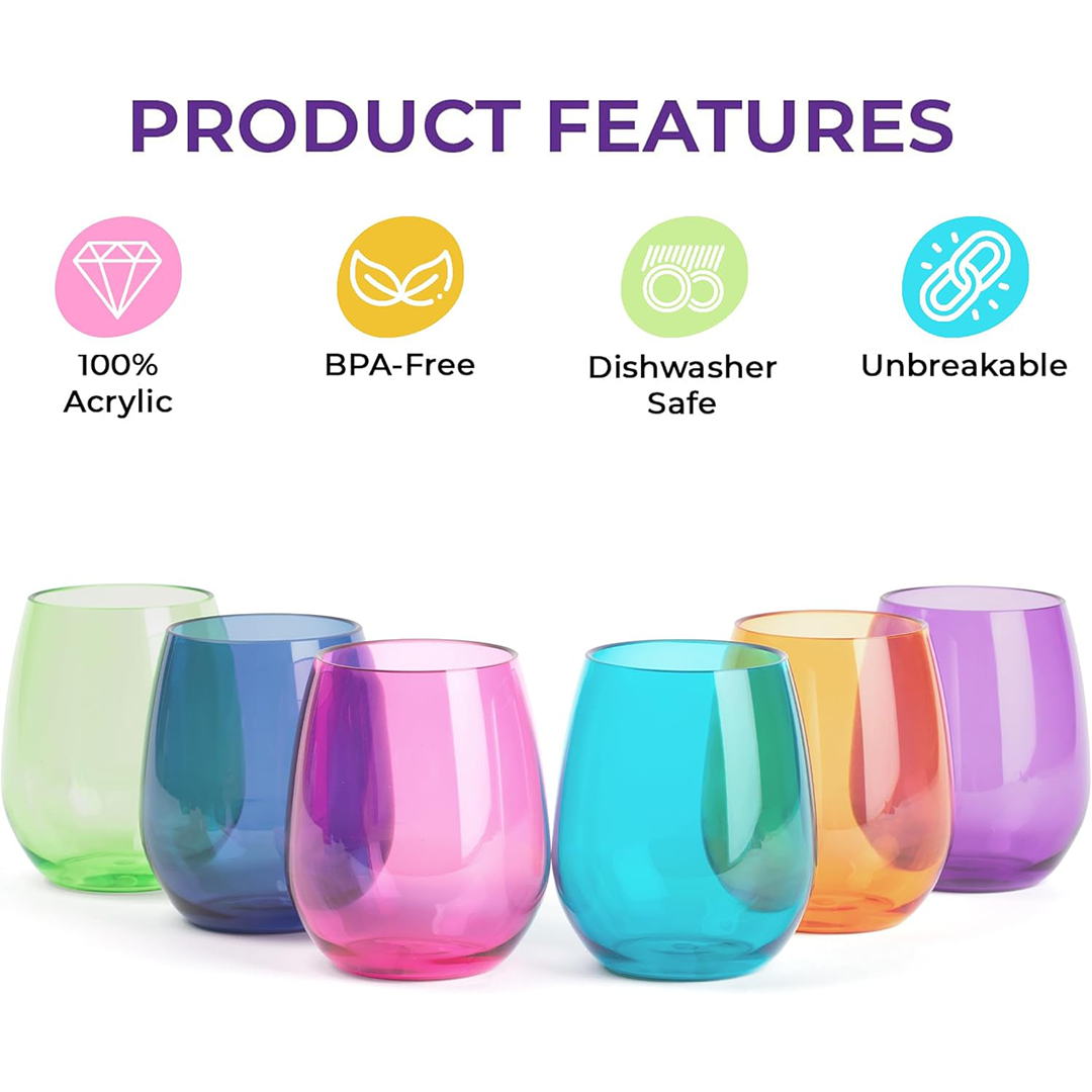 Acrylic Stemless Jewel Wine Glass 16 oz.