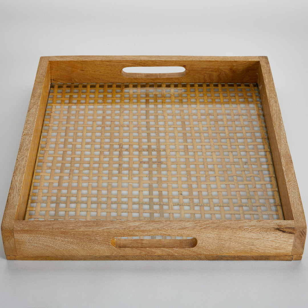 CANE & WOOD TRAY