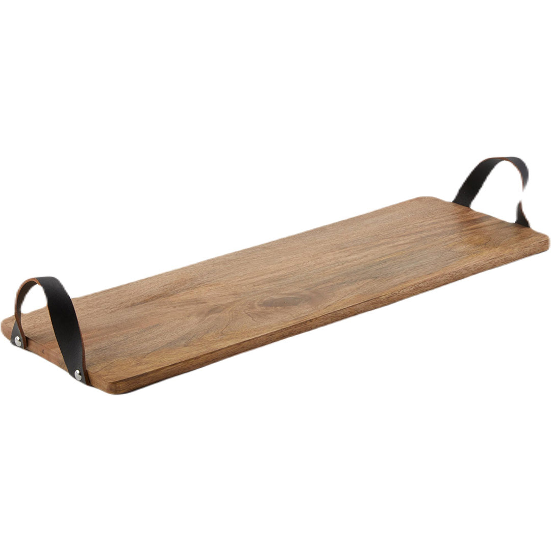 Designed for the discerning host, this charcuterie board with leather handles offers both durability and elegance. Its finely crafted surface is ideal for presenting a curated selection of artisan cheeses and cured meats, while the high-quality leather handles ensure a secure, comfortable grip. Perfectly balanced for serving, it enhances the presentation and functionality required for expert entertaining.