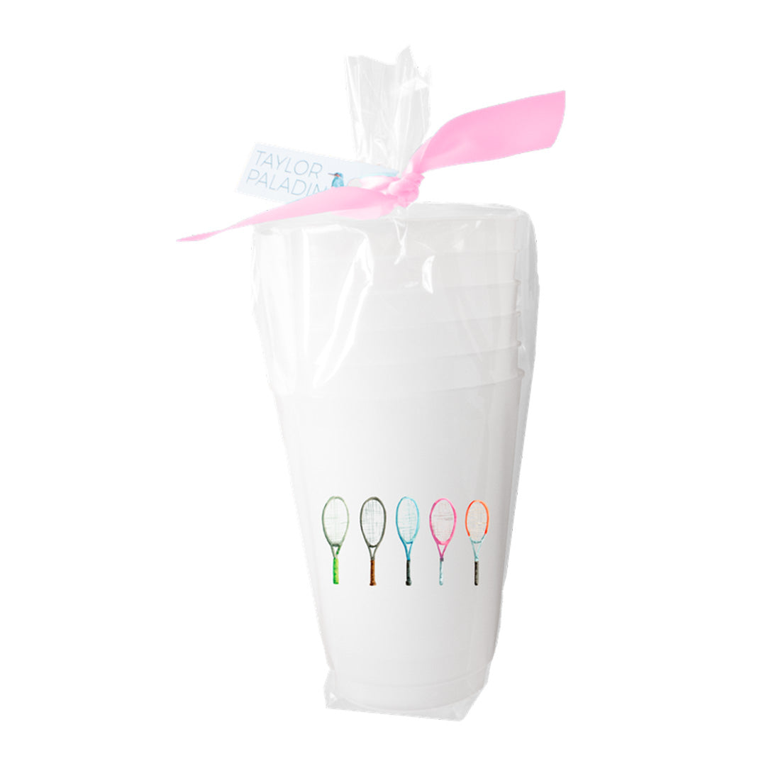 Serve up some style and fun at your next tennis match, backyard barbecue, or outdoor celebration with our 16-ounce frosted flex plastic cup featuring an original watercolor design by artist Taylor Paladino. Showcasing five colorful tennis rackets in a vibrant and playful arrangement, this cup is a perfect match for tennis lovers and sports enthusiasts who want to add a splash of personality to their drinkware. Made from high-quality, durable plastic, it keeps your cold beverages refreshing while being reusable and eco-friendly—ideal for reducing waste at your favorite outdoor events. The frost flex finish adds an elegant touch, turning everyday sipping into a stylish experience. Whether you're cheering courtside, lounging poolside, or hosting a lively wine night with friends, these delightful cups bring a sporty vibe and colorful charm to any occasion. Let every sip celebrate your love for tennis and good times with a cup that’s as vibrant and energetic as the game itself!