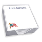 The America Memo Square - White with holder offers a selection between two patriotic motifs and 10 fonts. Printed in your choice 16 matte ink colors (for the top line) on our high-quality white paper text sheets.