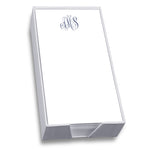 Our Delavan Monogram List - White with holder features your choice of 10 monograms, printed top center in one of 16 matte ink color selections. Produced on our high-quality white paper text sheets.