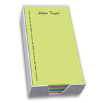 The Family Pride List - Carnival with holder allows a choice between 5 colorful papers with your personalization printed in black, matte ink. This item features a top line (in your choice of 10 lettering styles) and up to 10 individual names listed on the left side of the notepad.
