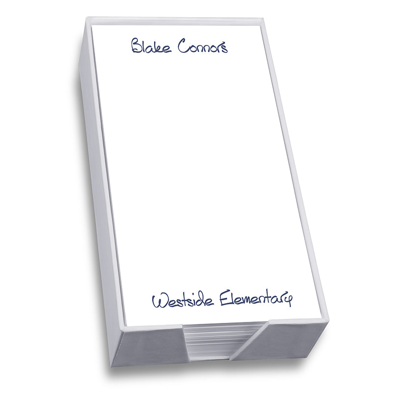 Our Highland List - White with holder offers both a top and bottom line of personalization, printed in your choice of 10 fonts and 16 matte ink colors. Produced on our high-quality white paper text sheets.