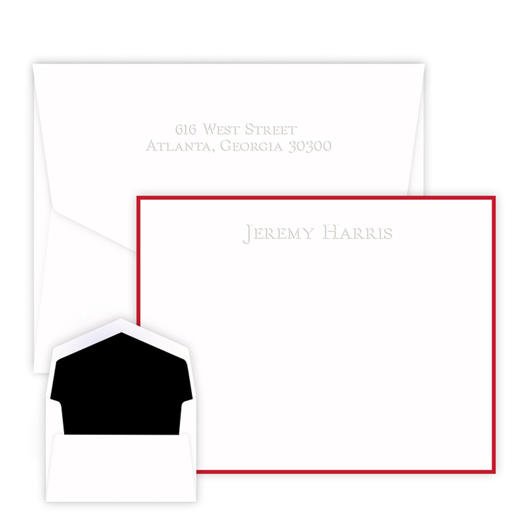 The Montreal Embossed Correspondence Card combines timeless elegance with a tactile experience, showcasing your name beautifully embossed in one of 10 refined fonts on premium triple-thick cardstock. Customize your card by choosing between classic white or ivory paper, adding an optional colored border, and selecting from luxurious envelope linings to enhance your personal style. Delivered in sets of 25 with matching Pinnacle envelopes, these flat correspondence cards provide a sophisticated and polished way to send thoughtful notes, making every message feel special and memorable.