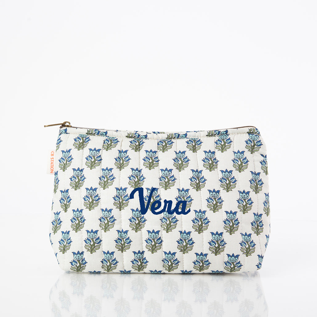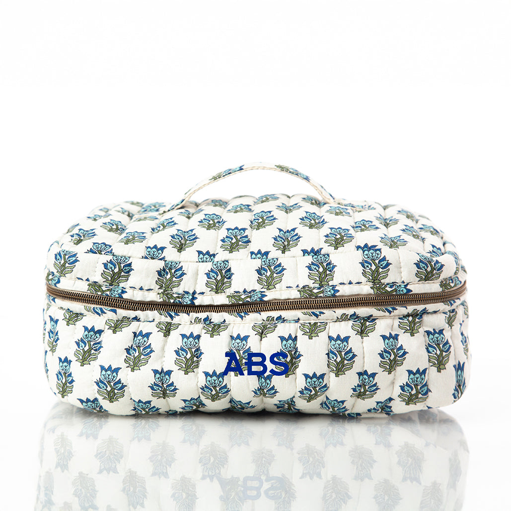Aqua Block Print Train Case